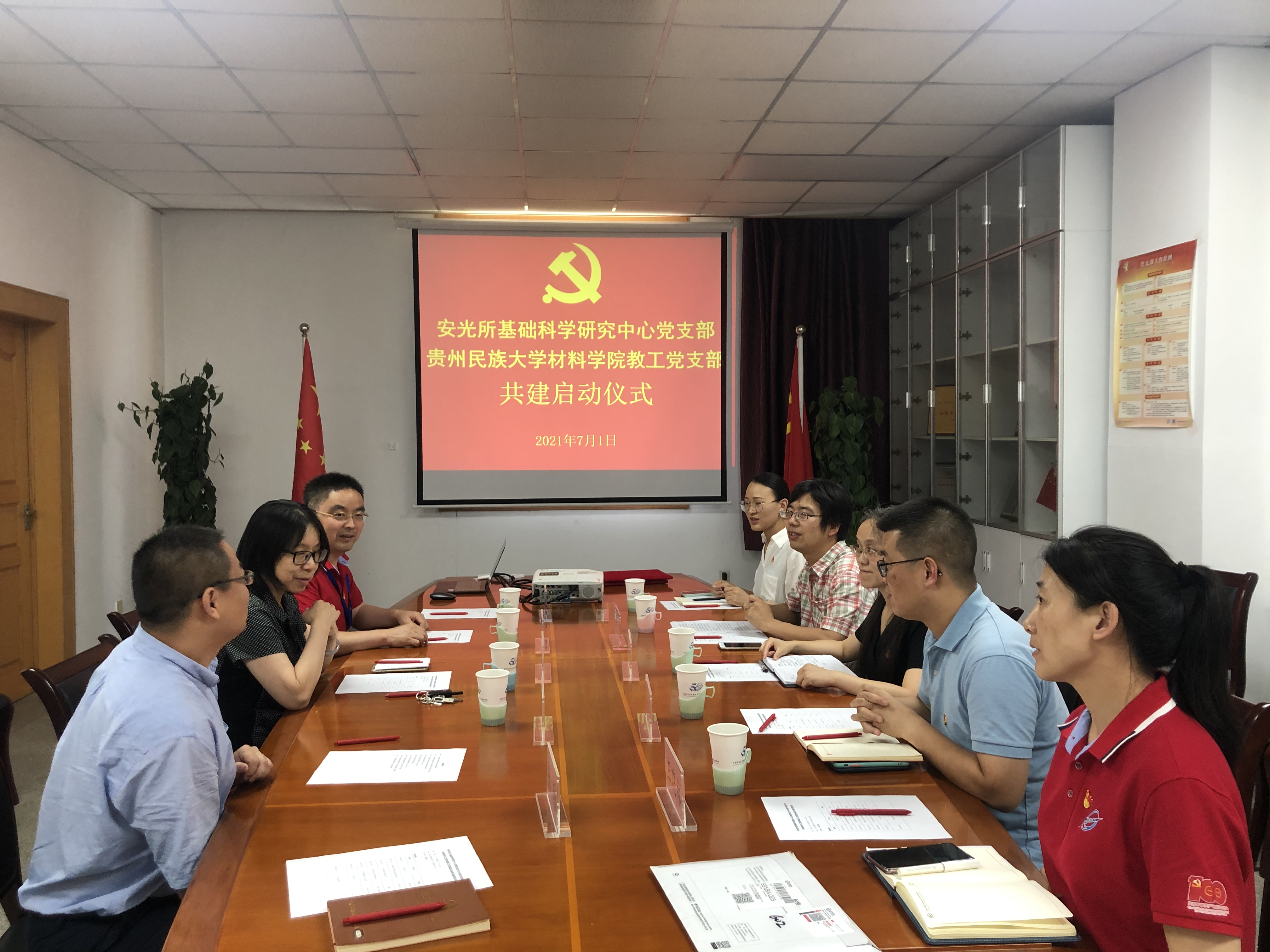 7月1日,正值中国共产党成立100周年之际,我院党委副书记陶媛一行赴合肥与中国科学院安徽光学精密机械研究所(以下简称安光所)开展教工党支部共建并签署合作协议。安光所党委书记谢品华、基础科学研究中心党支部书记唐小锋,所综合办主任兼党支部书记冯雪松、副主任王晓林、基础科学研究中心主任赵卫雄及部分党员代表等参加,会议由赵卫雄主持。
