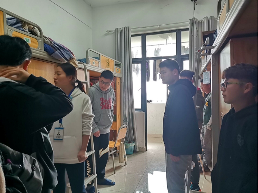 走访人员们对各班级寝室进行了详细的排查,重点排查了宿舍大功率电器和管制刀具,并向同学们进行寝室安全用电、严禁使用违规电器宣传。学院领导、老师还与同学们亲切交流,关心同学们的生活状况,叮嘱同学们注意用电、用水安全及财产安全,督促学生爱护寝室环境,共同营造良好的学习、生活环境。